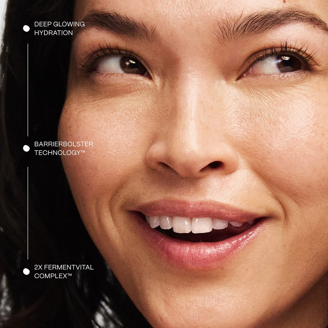 Encourages droplets to saturate onto the skin for a hydrated, glassy & even skin tone appearance with up to 60% Fermented Rice Water.