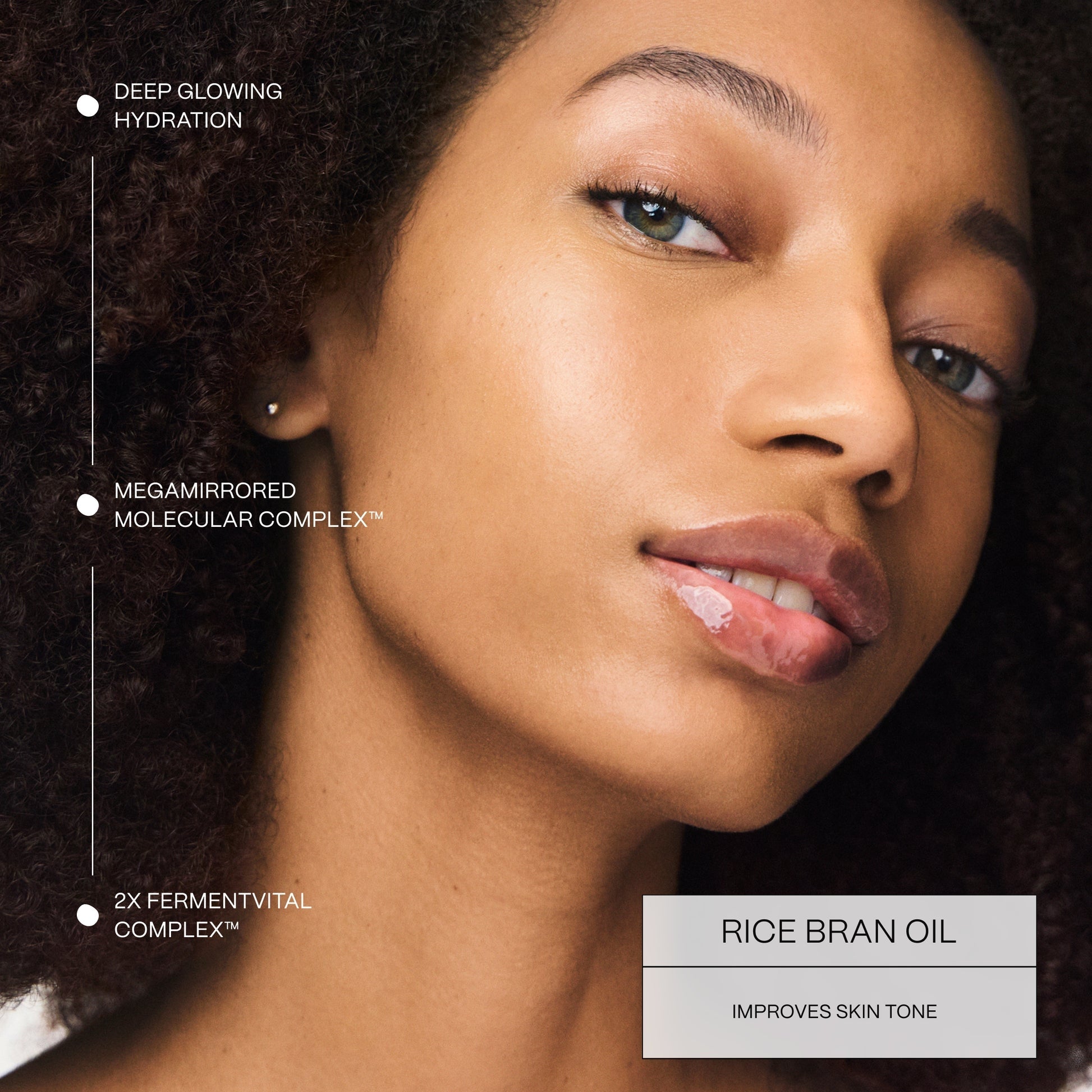 Helps bolster a stronger moisture barrier. Brightens, softens and tones skin providing a natural lit-within glow.