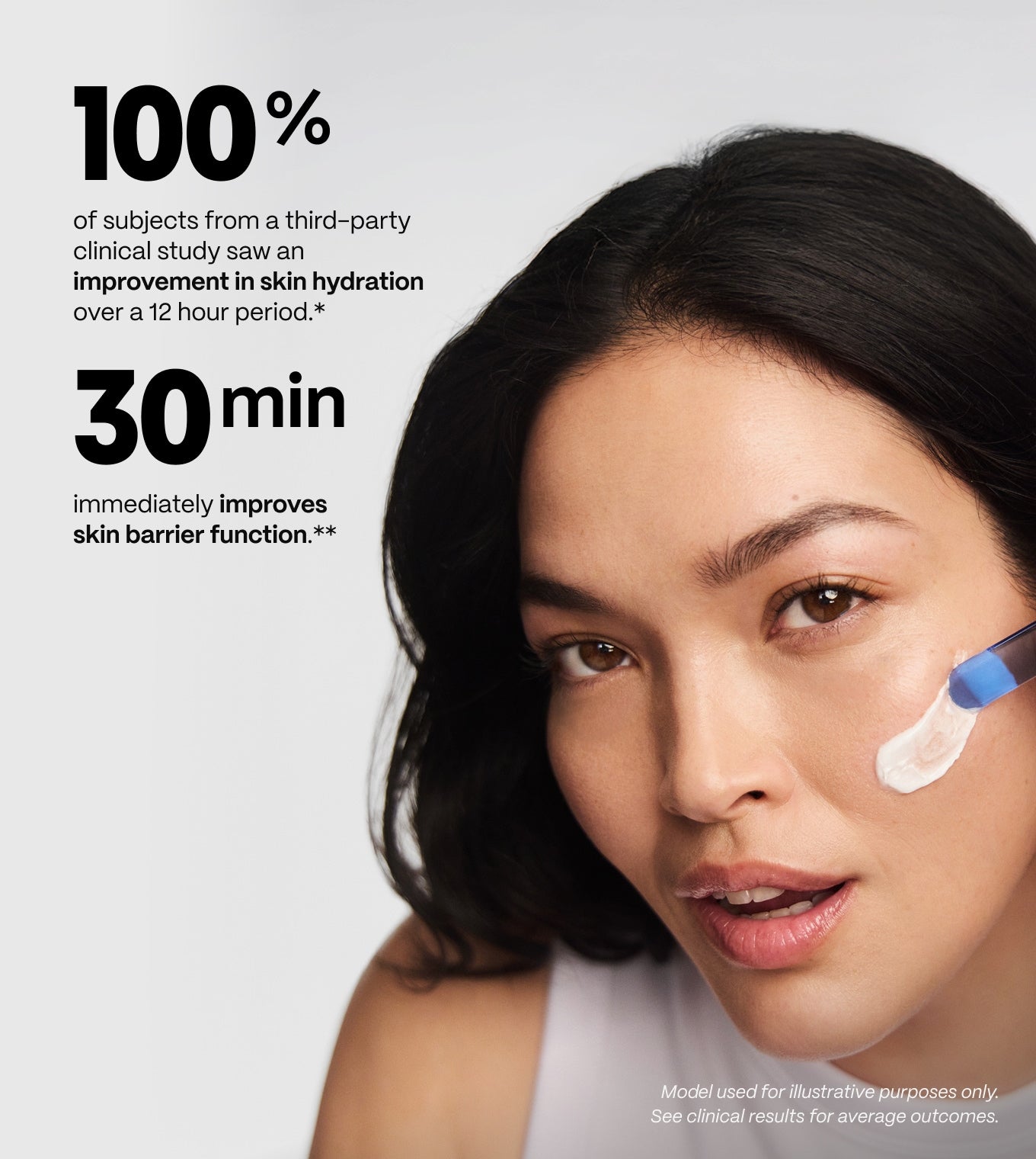 Provides temporary repair to skin’s moisture barrier function in 30 minutes based on third-party instrumental transepidermal water loss test of 32 subjects.